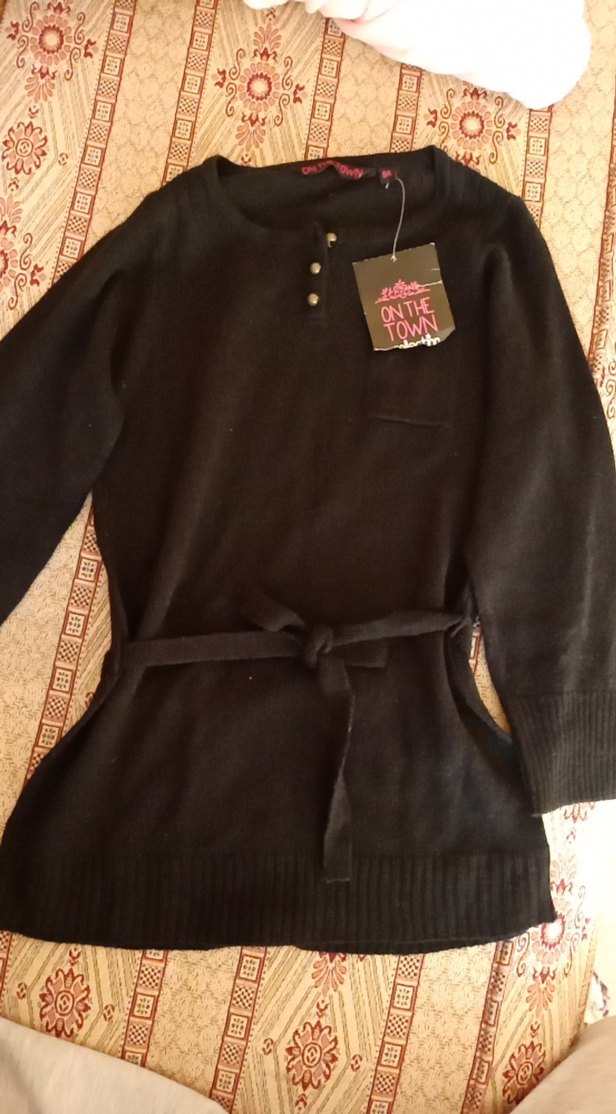 Siyah yün kazak, yuvarlak yaka, uzun kollu ve kemerli bel ile rahat, bol bir kesime sahiptir. Günlük kullanıma uygun, rahat ve gotik tarzda bir üründür.