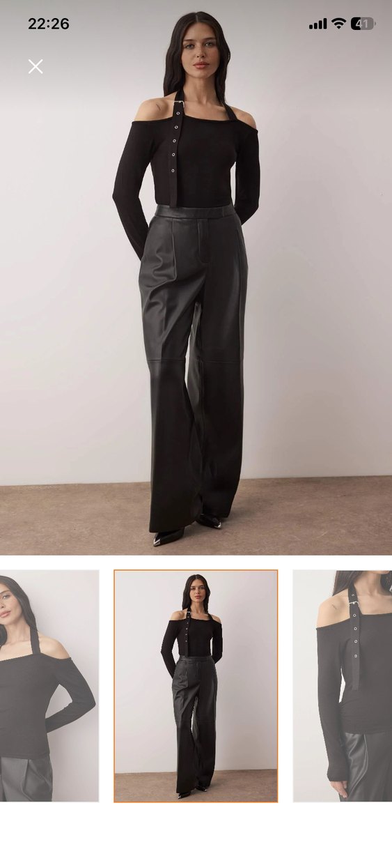 Bu kemerli siyah bluz, uzun kollu, yüksek yakalı ve vücuda oturan kesime sahiptir. Pürüzsüz sentetik kumaştan yapılmış, minimalist gotik tarzda günlük kullanım için uygundur.