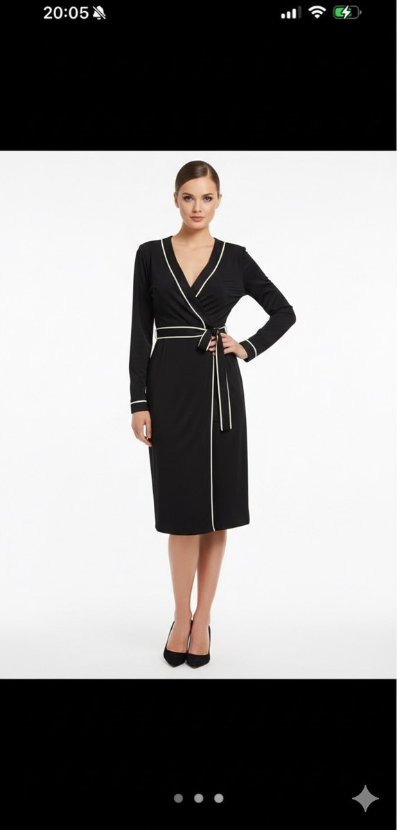 Kemerli bel, uzun kollu ve yakalı siyah elbise, modern klasik tarzda ofis için uygun. Düz renk ve düzenli kesimle şık bir görünüm sunar.
