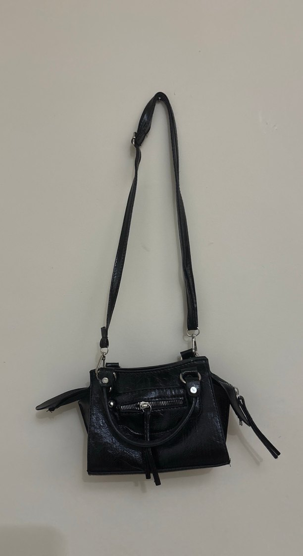Kemerli, siyah yılan derisi desenli deri çanta, minimalist gotik tarzda günlük kullanım için uygun.