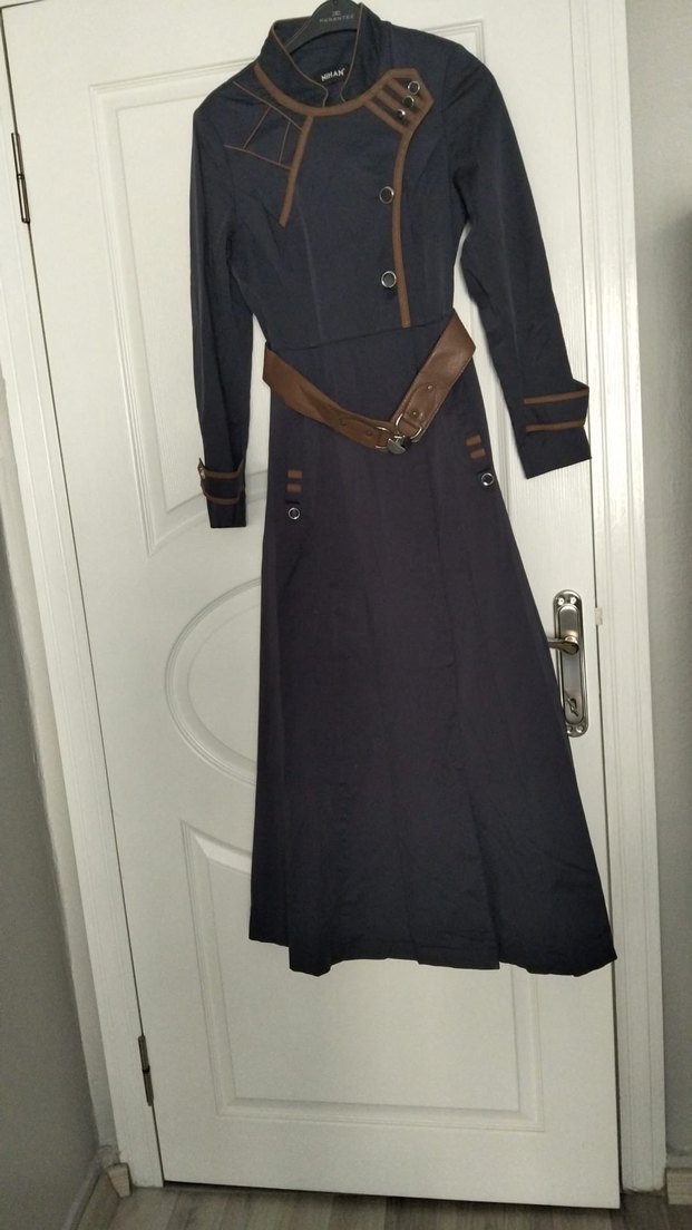 Kemerli, siyah uzun elbise. Strappy kollu, düzenli kesim ve günlük kullanıma uygundur.