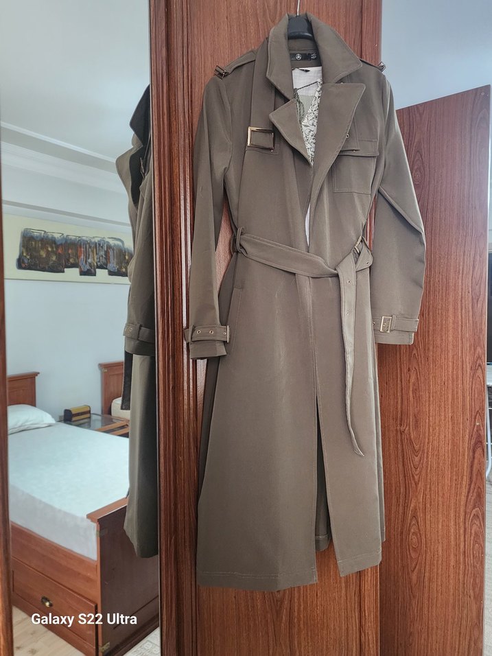 Kemerli Uzun koyu haki j Kadın Trençkot