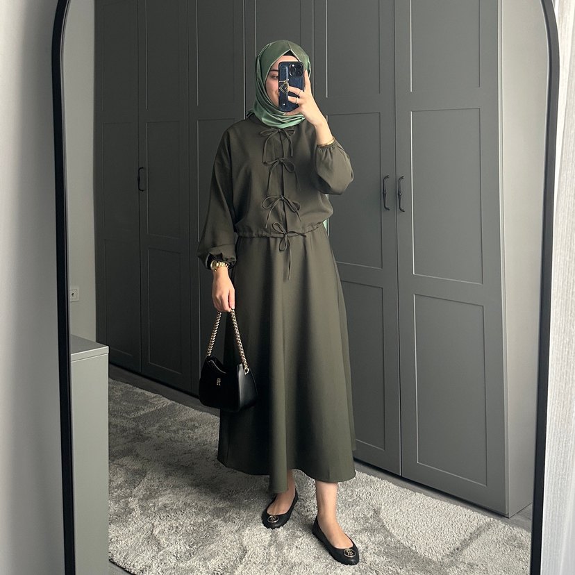 Kemerli Uzun Haki Kadın Elbise