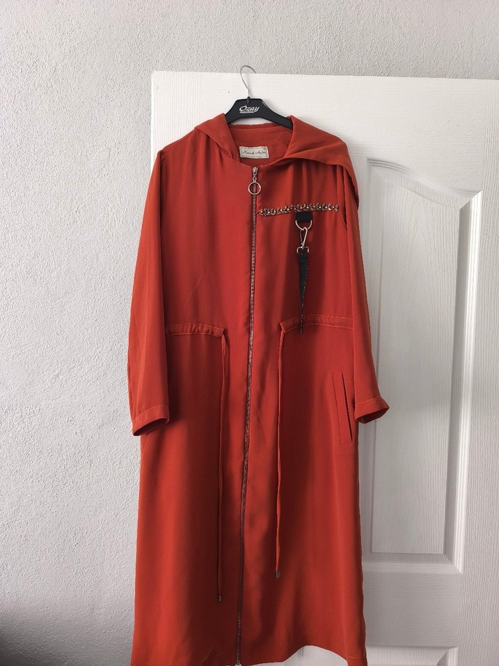 Kemerli, uzun kollu, salaş kesimli kadın kaban. İpeksi dokusu ve minimal çizgileriyle günlük sokak stiline uygun.