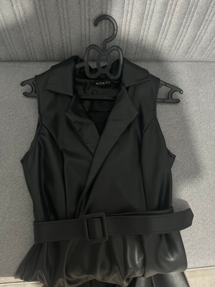 Kemerli, Uzun Kesim Siyah Deri Kadın Jile Elbise
