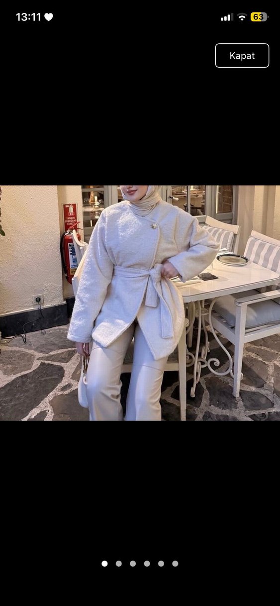 kemerli ve uzun kollu ceket, yüksek yakalıdır. Rahat kesimi ve yumuşak, sıcak dokusuyla günlük kullanım için uygundur.