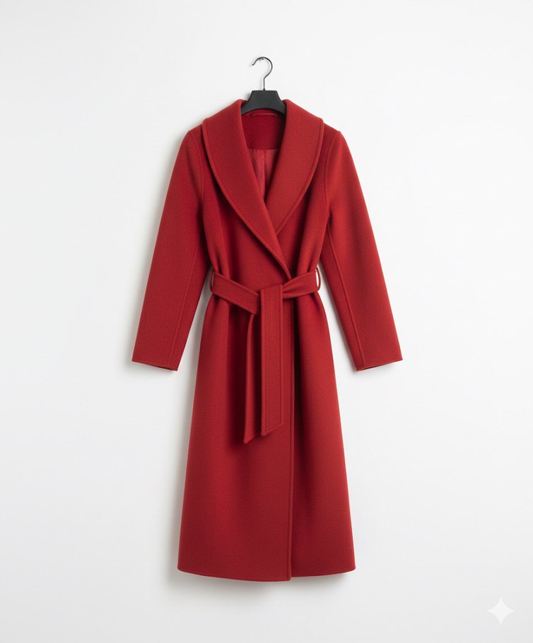 Kemerli Uzun Trendyol Kırmızı Kaban