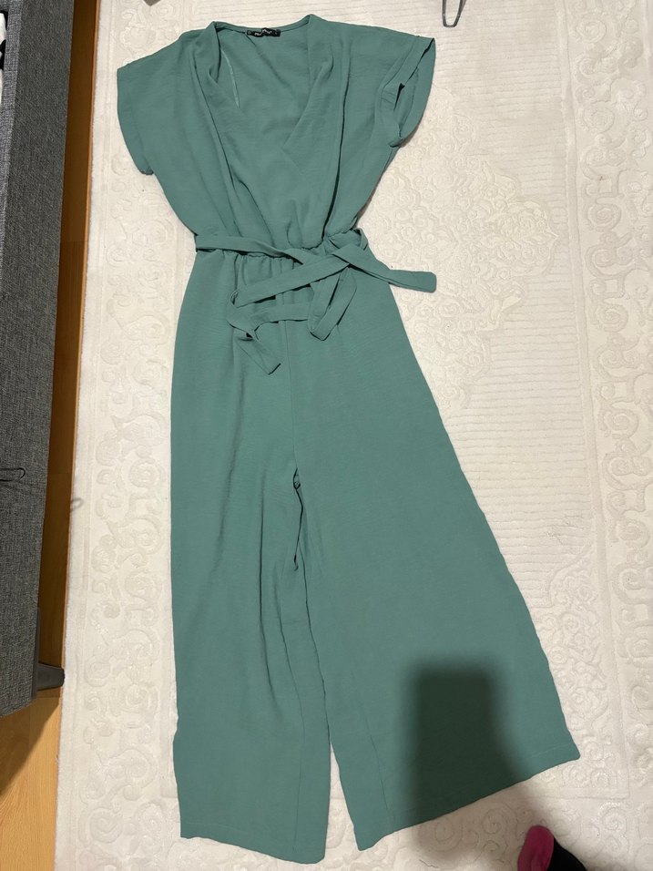 Kemerli, V yaka, kolsuz ve bol kesim uzun kadın tulumu. Yumuşak sentetik kumaştan yapılmıştır ve günlük kullanıma uygundur.