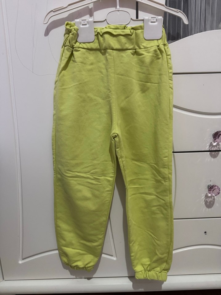 Kemerli bel ve yumuşak, sıcak kumaşla tasarlanmış yeşil bol kesim kız çocuk eşofman altı