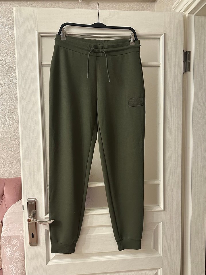 Kemerli bel, bol kesim ve midi boyda koyu yeşil erkek eşofman altı. Yumuşak ve sıcak kumaş, dış mekan kullanımı için uygun, sokak stiliyle uyumlu. Tertemiz sadece 2 kez giyildi. Orjinaldir iç barkodun resmini çektim