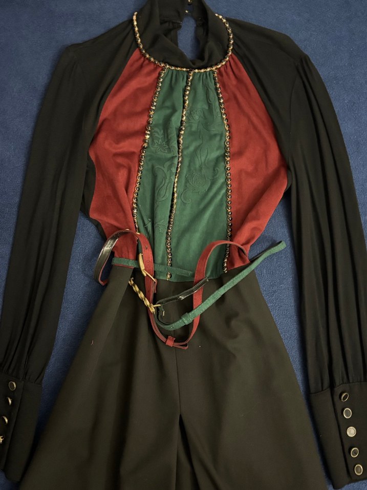 Yakasındaki boncuklarda sökülme var ve kemeri eskimiş durumda harici iyi durumda uzun etekli elbise.
