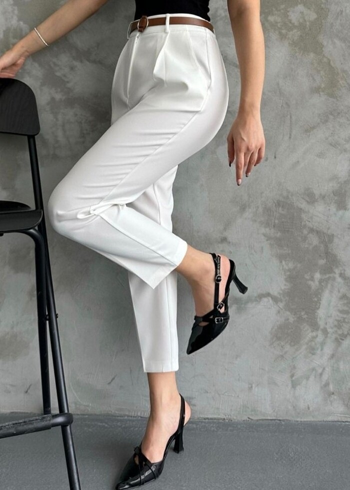 Kemerli beyaz şık pantolon bel 40cm ●boy93 cm● basen 100 cm ●paca 17 cmm