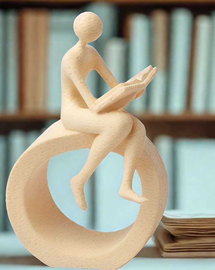 Kemik Rengi Daire Üzerinde Kitap Okuyan Biblo 10cm