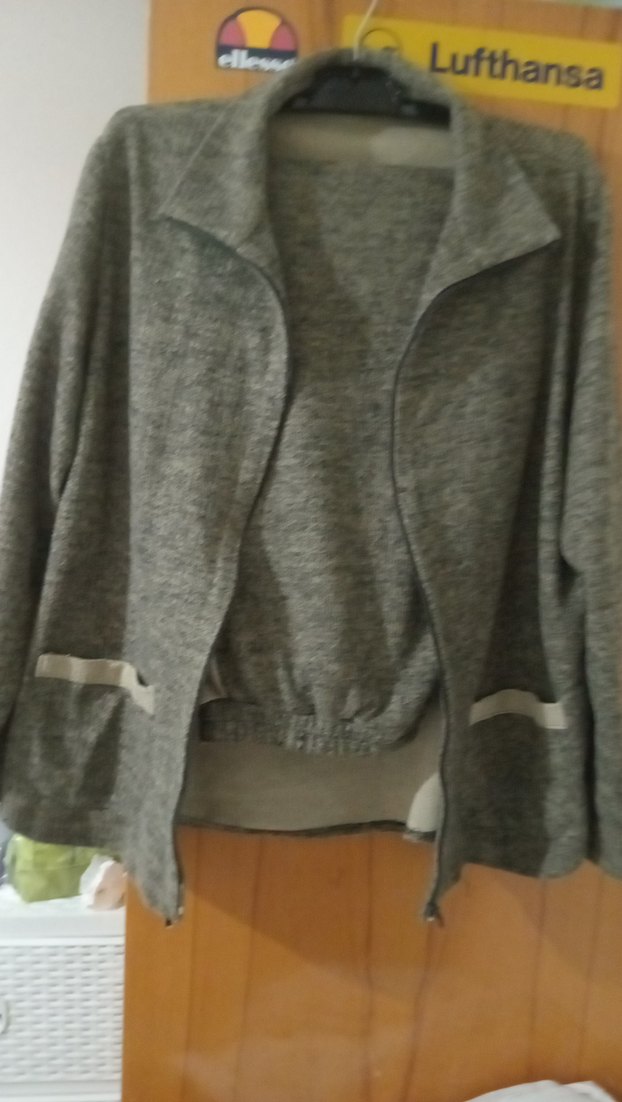 kemıl renkte, bol kesim alt üst takım ceket uzun kollu ve kesik yaka detaylıdır. Fermuarlı ve cepli, yumuşak ve sıcak kumaştan üretilmiştir. kendim dikimimdir