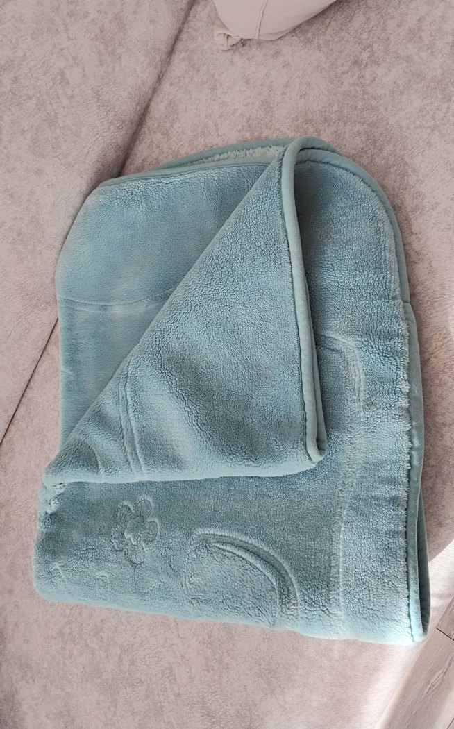 Yumuşak ve sıcak pastel mavi nakışlı çocuk battaniyesi, rahat bir kumaştan yapılmıştır. Çocukları rahat tutmak için uygundur.