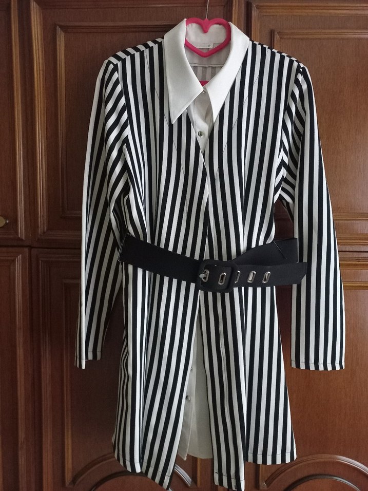 Kaşe kemeri mevcut. Tiril tiril yumuşacık bir kumaşı var .Kendinden gömlekli çizgili uzun ceket. Bedeni xl-42 yazsada medium ve large bedenede rahatlıkla olur.