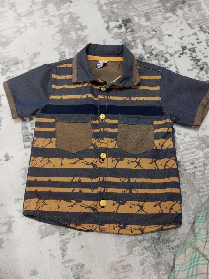 kendinden renkli kumaşlı lacivert sarı renkli yazlık gömlek