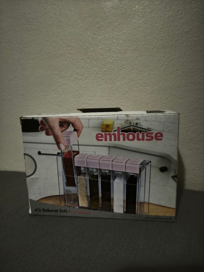 Kendinden standlı Emhouse 6'lı Şeffaf Baharat Seti Pembe Kapaklı