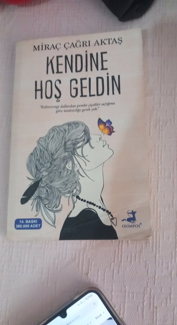 Miraç Çağrı Aktaş'ın "Kendine Hoş Geldin" kitabı, kişisel gelişim için öneriler sunar. Kadın ve kelebek illüstrasyonlu kapak, Olimpos tarafından yayımlanmıştır.