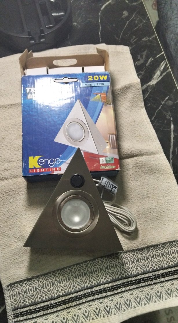 Kengo markasının 20W gücünde, bej-gri renkli üçgen dolap lambasıdır. Güç düğmesi ve modern tasarımıyla dikkat çeker.