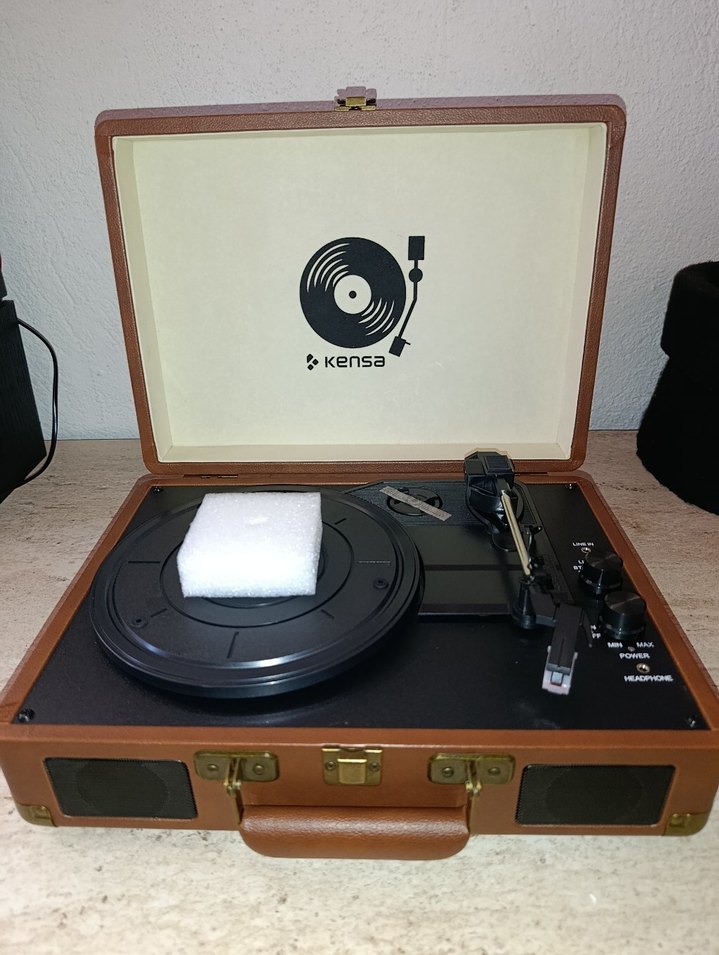 Kensa markalı taşınabilir müzik sistemi, kahverengi vintage valiz tasarımı ve yerleşik hoparlörlerle plak çalmak için uygun.şarj taşınabilir