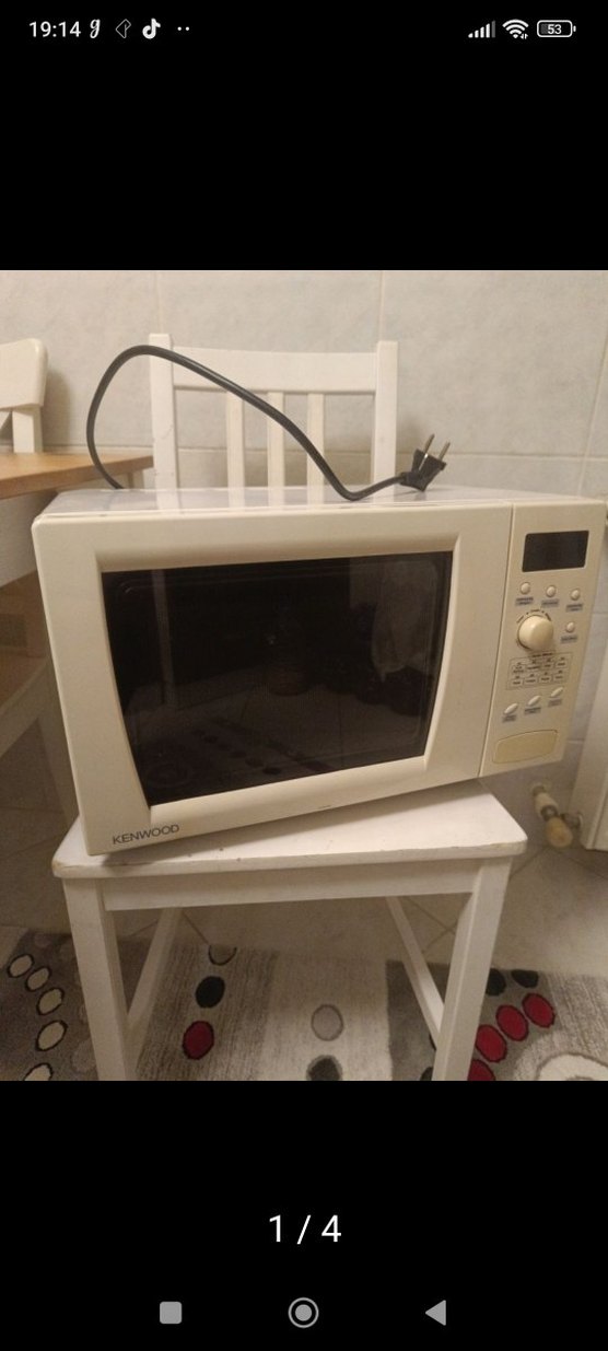 Dijital ekran ve kontrol düğmelerine sahip Kenwood beyaz mikrodalga fırın. Mutfak kullanımı için kompakt tasarım. ⚡️