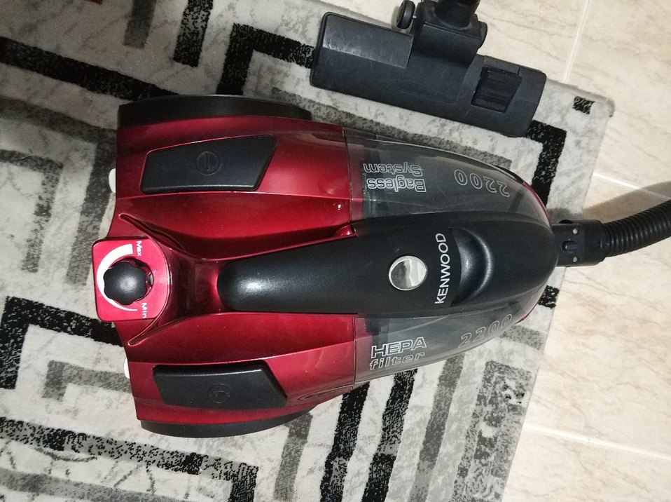 Kenwood markalı koyu kırmızı renkli elektrikli süpürge, HEPA filtre sayesinde yüksek hava kalitesi ve etkili temizlik sunar. Kompakt tasarıma ve kolay kullanılabilen düğmelere sahiptir.