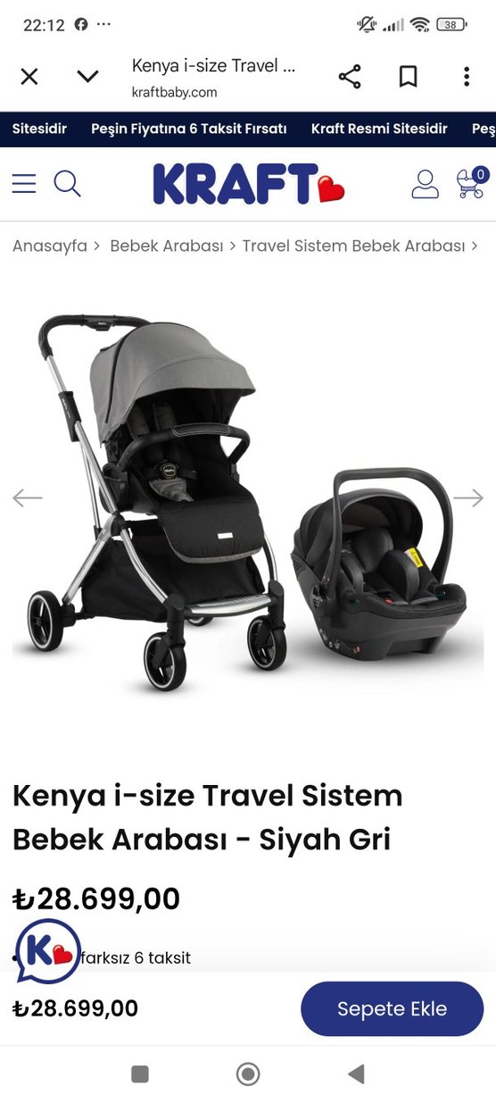 Kenya i-Size Siyah Gri Travel Sistem Bebek Arabası