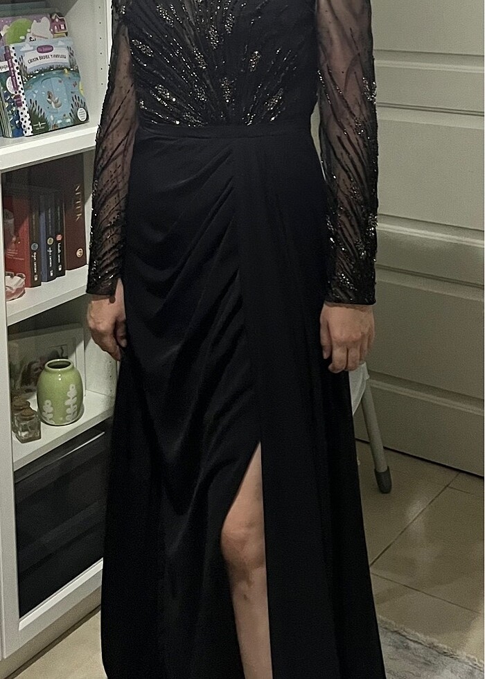 Bir gece giydim ürün yırtmaçlı arkası fermuarlı astarı vardır etekleri için kuru temizleme gerekebilir üstü boncuk işleme Kenzel marka kalıbı dar olduğu için 40 beden aldım 38 bedenim