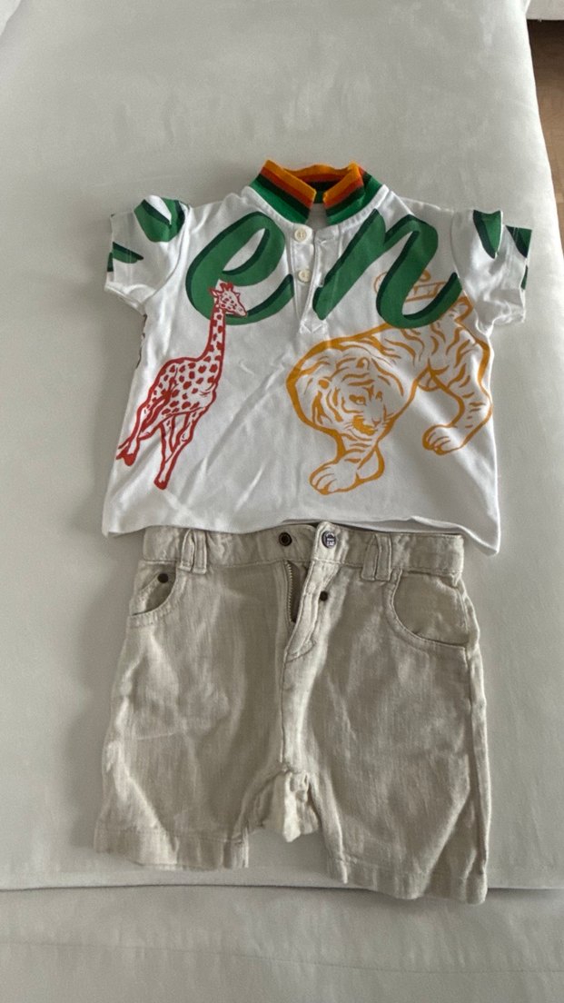 Kenzo Baskılı Kısa Kollu Tişört ve Kemerli Keten Şort
