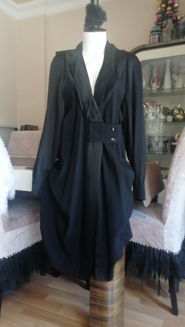 Siyah, uzun kesim ve salaş uzun kollu ve yakası kesik detaylıdır. Yumuşak ve sıcak kumaştan üretilmiştir, günlük kullanım için uygundur. Komple açilır Parlak saten ve mat kumaş kullanıldı Çok çok asil ve şık bir Kruvaze eibise Ölçüleri koltuk ara 50 cm Boy 109 cm