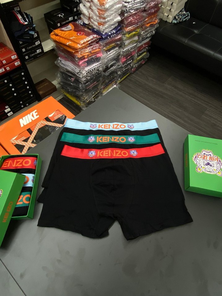 Kenzo markalı, renkli bel bantları ve baskılı desenleri olan, kısa paçalı, erkeklere özel dar kesim üçlü boxer seti. Athleisure tarzına uygun.
