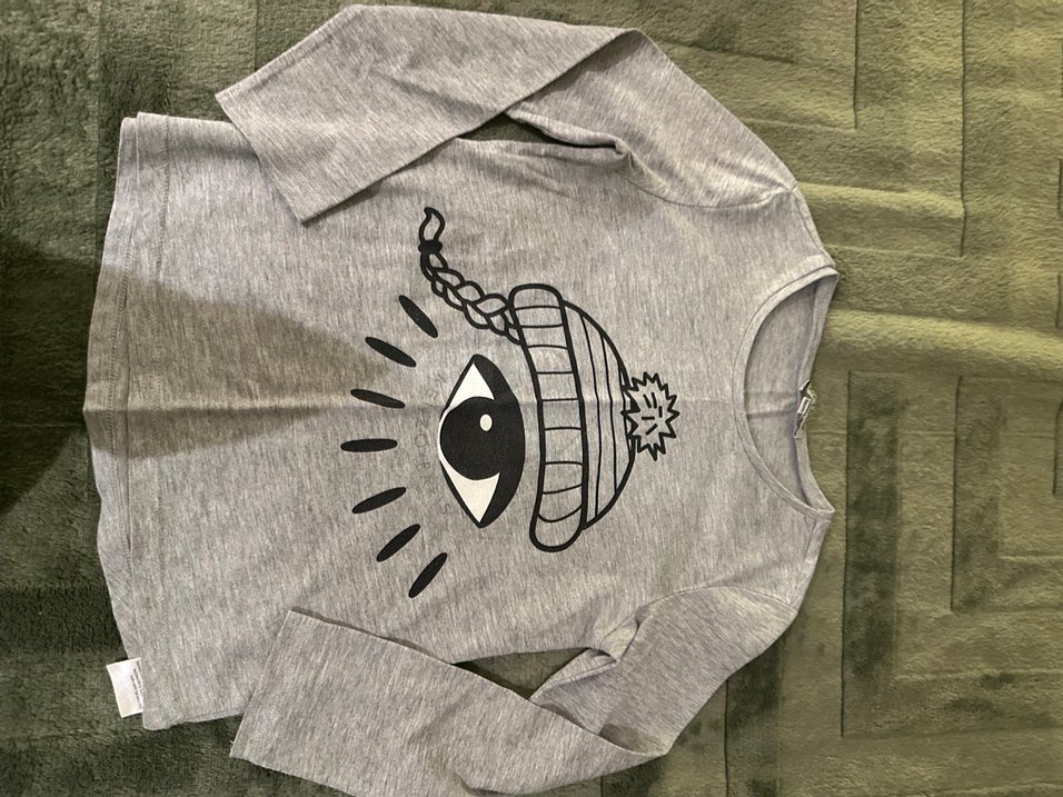 Orjinal Kenzo kids Gri renkli, uzun kollu, yuvarlak yakalı kız çocuk tişörtü. Biraz kullanıldı uygun fiyat