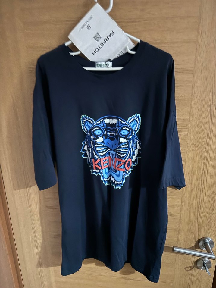Kenzo marka standart kesim, yuvarlak yaka, kısa kollu erkek tişörtü, lacivert renkte mavi baskılı kaplan logolu. Günlük kullanıma uygun. Ürün etiketli sıfır üründür. Dubai Farfetch mağazasından alınmıştır.