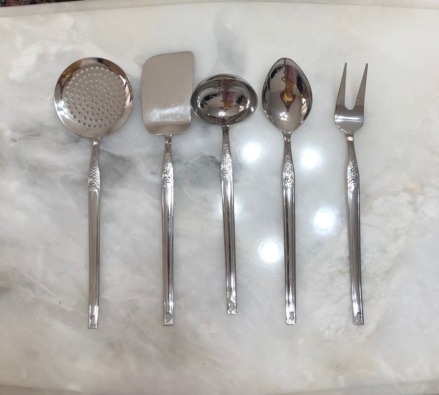 Cem markanın paslanmaz çelik 5 parça kepçe takımının boyutları 35cm.’dir.Süzgü kepçesi ve supatulası az kullanımdandan dolayı çok hafif çizikleri vardır. Bunun haricinde ürünlerde herhangi bir sorun ve deformasyonu yoktur. Lütfen görselleri inceleyiniz…