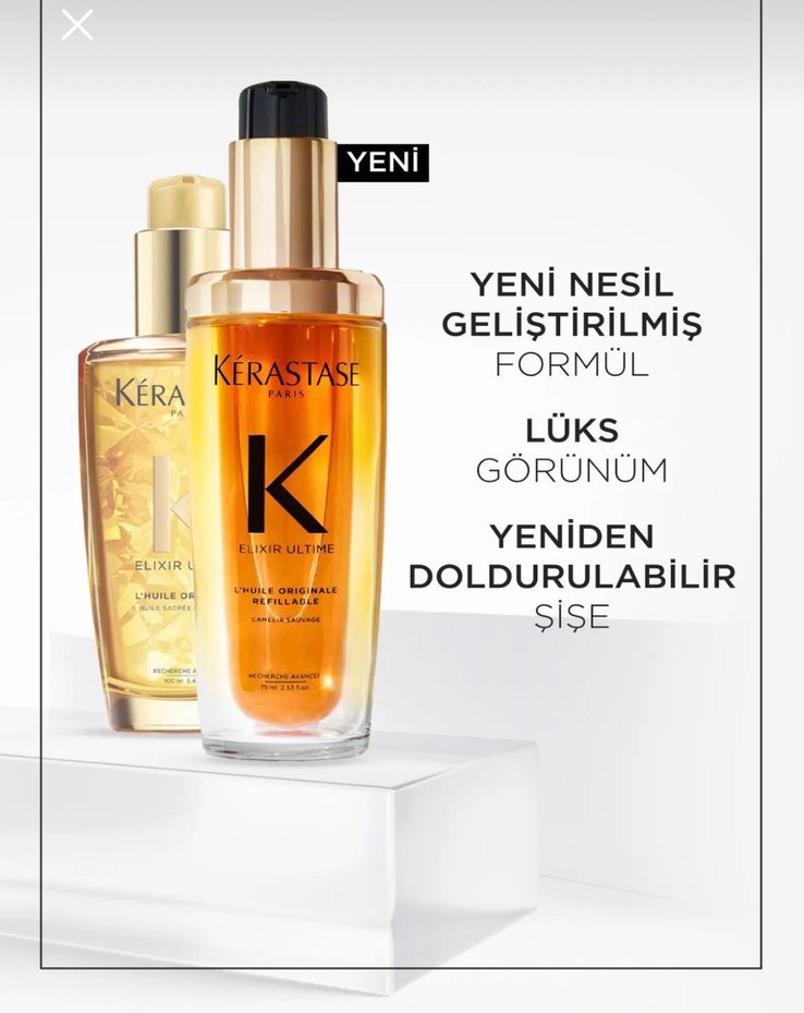 Kérastase Elixir Ultime, yeni nesil geliştirilmiş formülü ve lüks görünümüyle yeniden doldurulabilir şişede sunulur. ✨ hiç açılmadı.