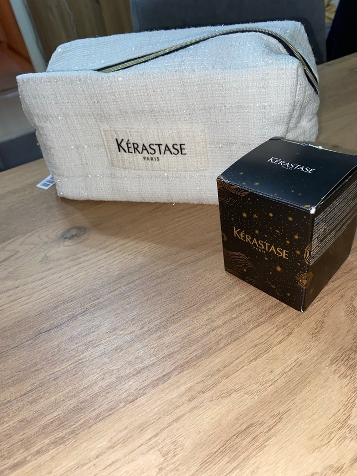 Kérastase markalı siyah mum ve yumuşak beyaz kumaş kılıf içerir. Ortama zarif bir dokunuş katar. ️