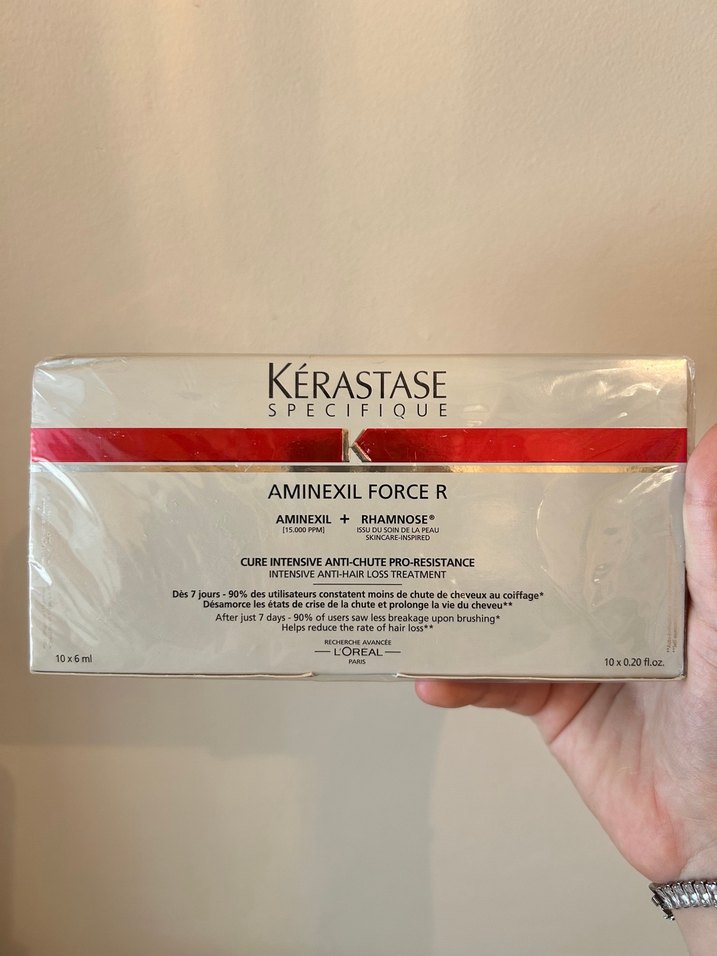 Kérastase Specifique Aminexil Force R, Aminexil ve Rhamnose içeren yoğun saç dökülmesine karşı bakım kürüdür. 7 gün içinde saç dökülmesini azaltır ve saç köklerini güçlendirir. 10 ampul, 6 ml.