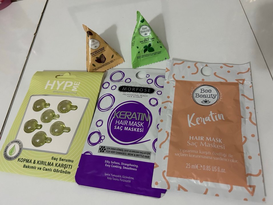 Keratin içeren 25ml'lik saç maskeleri seti, saçı yumuşatır, güçlendirir ve yıpranmaya karşı korur. Saç dokusunu iyileştirir ve kolay taranmasını sağlar.