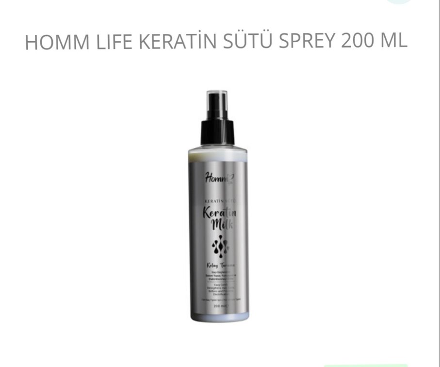 Keratin sütü sprey, saçlara hafif bakım ve parlaklık sağlar. Saçları yumuşatır, korur ve pürüzsüzleştirir. Günlük kullanıma uygundur. ♀️ saçın elektriklenmesini önler bakım yapar saça çok güzel bir ürün homm bitkisel