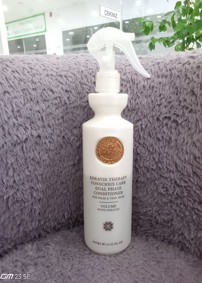 Keratin Dual Phase Hair Conditioner. Saçı ağırlaştırmadan yumuşatır ve nemlendirerek kolay taranmasını sağlar. Özel formülü sayesinde saçı besler ve parlak görünmesini destekler. 400ml.