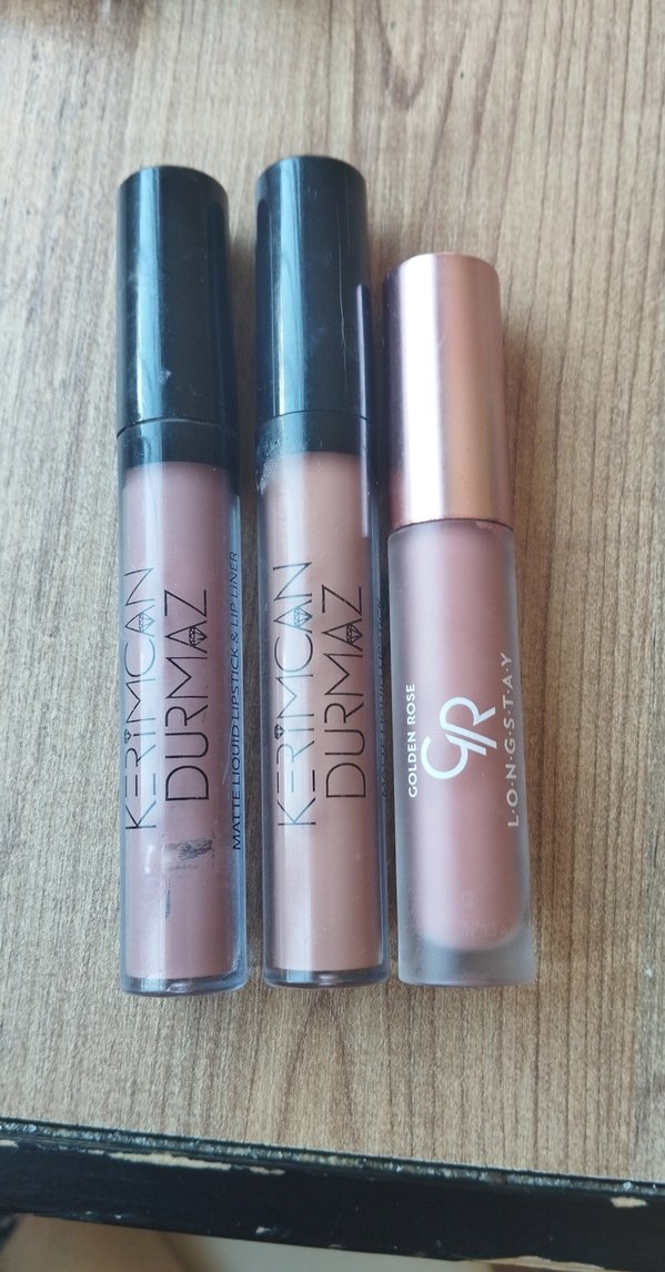 Uzun süre kalıcı, bej pastel tonlarda üçlü ruj seti. Doğal görünüm için uygun.