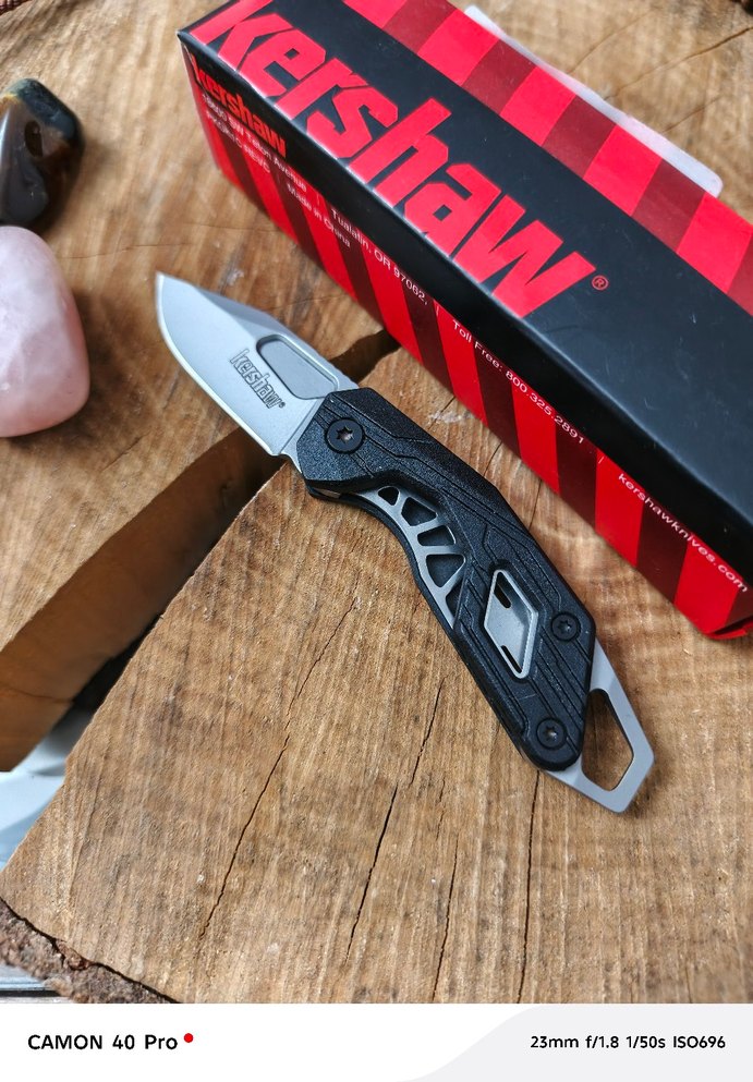 Kershaw katlanır bıçak, siyah sap ve keskin bıçak ile kompakt tasarıma sahiptir. Kırmızı-siyah kutuda sunulur.