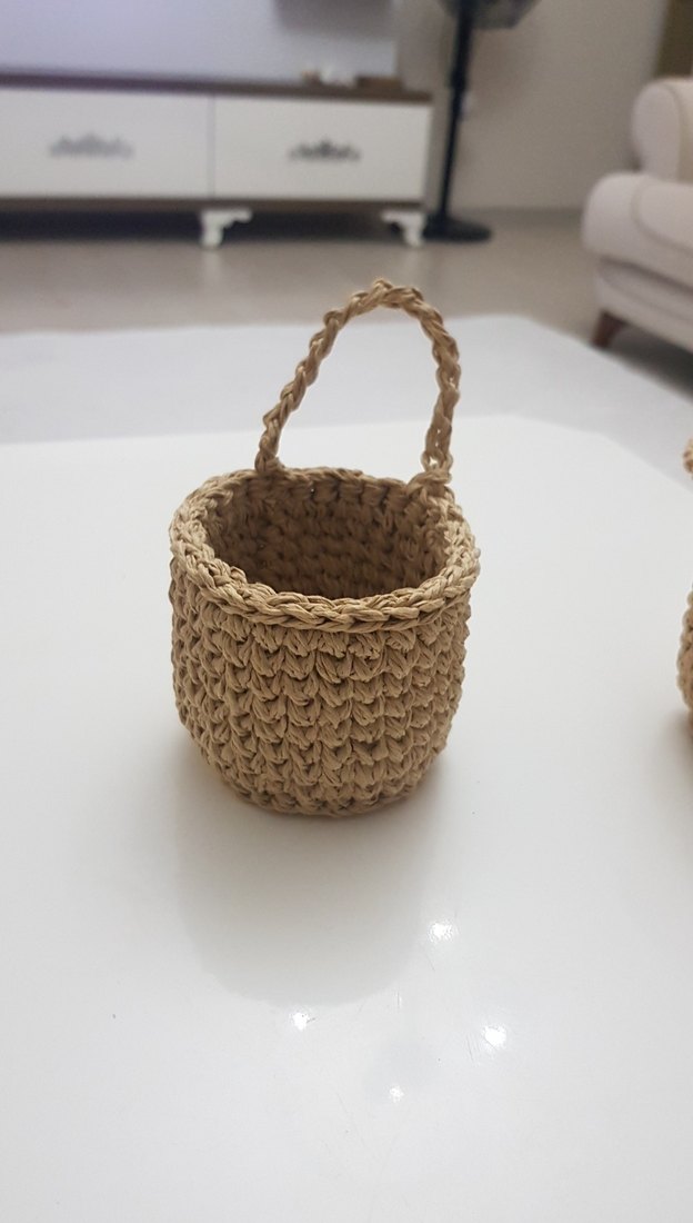 kagit renk bej renkli örgü sepet, küçük eşyalar için uygun. Hafif ve doğal tasarım. adet fiyati 100 tl