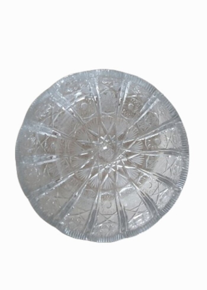 Kesme Kristal Şekerlik..Derin ve yuvarlak kasenin ağız kenarı dilimli, dış yüzü incelikle el kesme işçiliği ile dantel gibi işlenmiş. Kusursuzdur.20.yy. ortaları. Kase çapı 21 cm.Yükseklik 10 cm..Cam kalınlığı 1 cm..Ağırlık 2276 gr