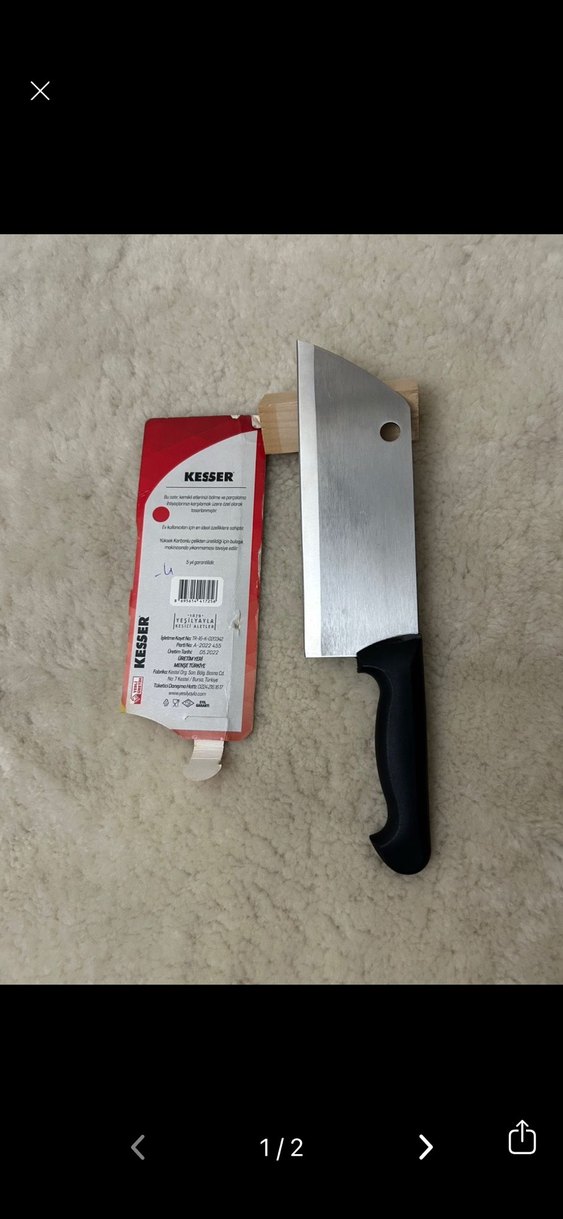 Keskin bıçağı ve ergonomik siyah sapı ile gri mutfak bıçağı. Çeşitli kesim işleri için uygundur. Marka: Kesser.