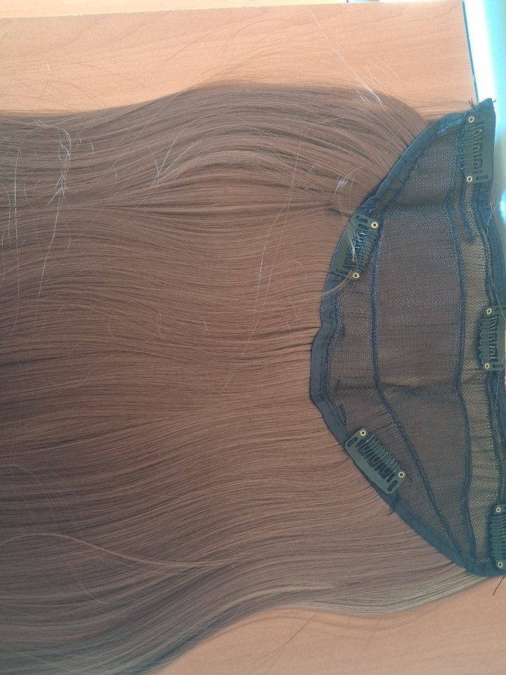 yapay saç.hiç kullanılmadı. düğünde kullanmak için almıştım. saç rengimle uymadığı için kullanamadım. yarım ay diye geçiyor