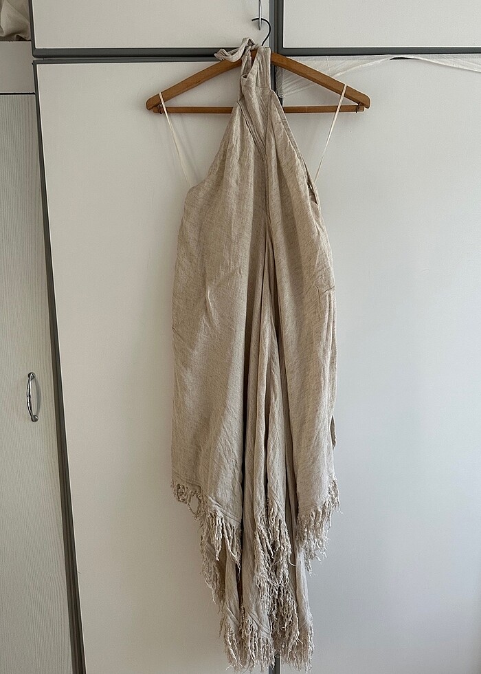 Keten boyundan bağlamalı elbise