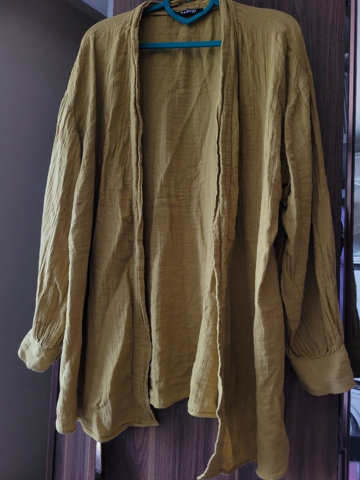 Bej renkte, keten kumaştan hamile ceketi. Uzun kollu, notched yakalı ve bol kesim. Salaş ve bohem tarzıyla günlük kullanıma uygundur. ✨