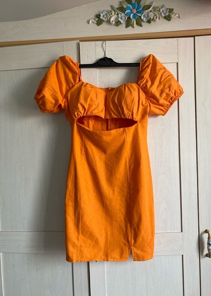 Dekolteli keten elbise. Rengi son görseldeki gibidir. Küçük göğüslülere uygun